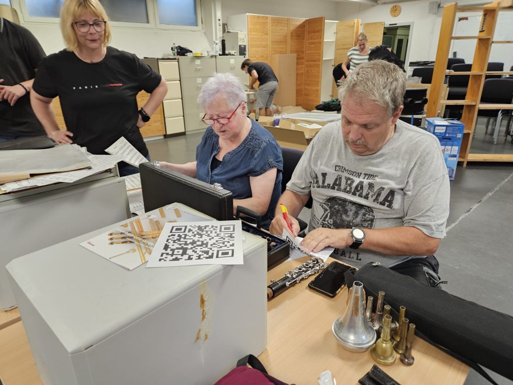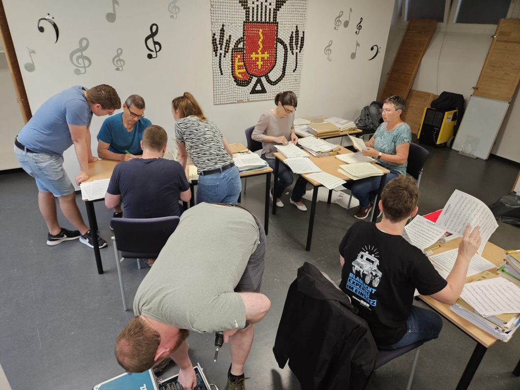 Schränke wurden ausgeräumt, Uniformen ausgemistet, Noten wurden eingescannt, sortiert und altes Notenmaterial entsorgt. Es wurde gefegt, gesaugt, gewischt und geschrubbt. Unsere neuen Lagermöglichkeiten wurden komplett eingerichtet.