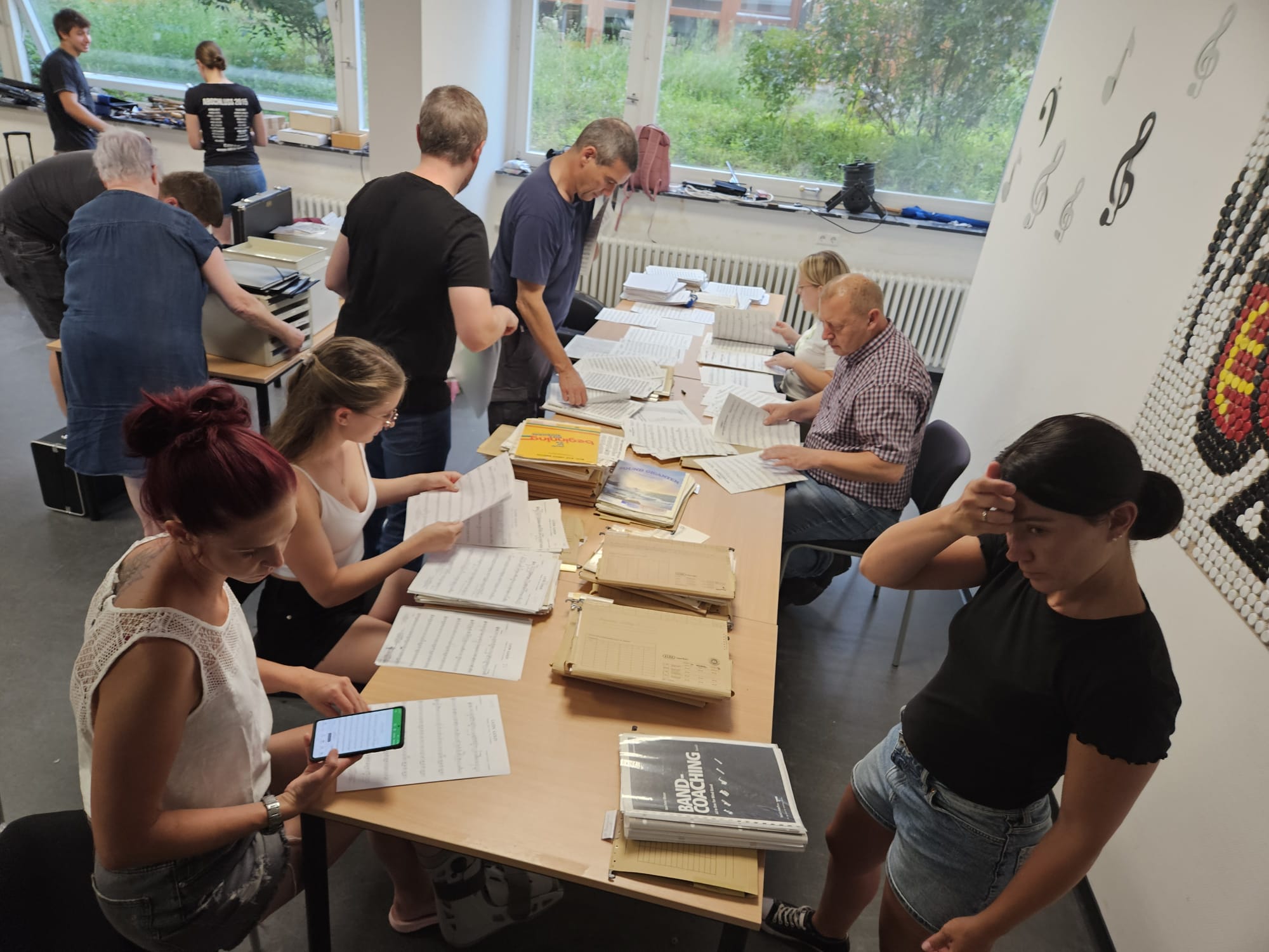 Schränke wurden ausgeräumt, Uniformen ausgemistet, Noten wurden eingescannt, sortiert und altes Notenmaterial entsorgt. Es wurde gefegt, gesaugt, gewischt und geschrubbt. Unsere neuen Lagermöglichkeiten wurden komplett eingerichtet.